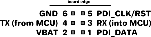For those interested in using the programming and GPIO functionality, but don't want to use the PC interface, there is a TTL serial port onboard on the 6-pin PDI header (top-left of the board photo). This UART mirrors exactly the virtual serial port over USB, with the only exception that virtual ports do not have a defined baud rate. The default baud rate on this port is 9600 with 8-bit data, no parity, 1 stop bit (9600/8N1). This can be changed through either USB or the serial port itself. Note that the pinout is exactly the same as an AVR PDI programming port, but with the unused middle pins assigned TX and RX. The designations TX and RX are from the MCU's perspective.