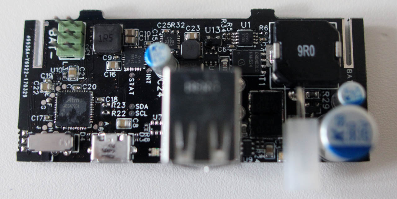 - The USB output ports. These two USB 2.0 type-A ports act as a dedicated charger port (DCP) or Apple-compatible charging port outputting up to 2.0A. The power contacts on both ports are connected together and the D+/D- pins are connected to a charge management IC.